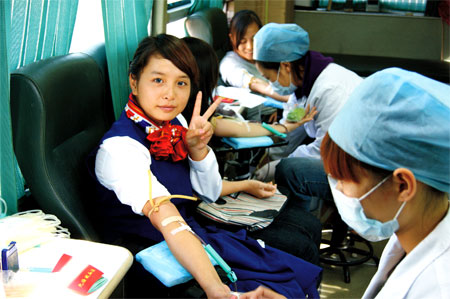 桂林旅游高等專科學(xué)?罩谐藙(wù)專業(yè)學(xué)生積極獻(xiàn)血 本網(wǎng)訊 一個時期以來,媒體報道了昆明、北京、南京等一些地方相繼出現(xiàn)的血液供應(yīng)告急的情況,桂林旅游高等?茖W(xué)?罩谐藙(wù)專業(yè)的學(xué)生認(rèn)真學(xué)習(xí)1998年10月1日開始實施《獻(xiàn)血法》,積極貫徹國家實行無償獻(xiàn)血的制度,自發(fā)組織開展了無償獻(xiàn)血活動。同學(xué)們感到,這次無償獻(xiàn)血活動除能夠為緩解供血緊張狀況貢獻(xiàn)自己的微薄之力以外,也能夠從無償獻(xiàn)血活動中使自己的愛心得到升華。