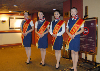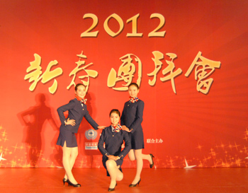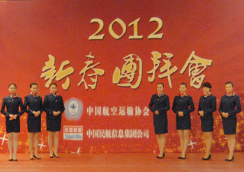本網(wǎng)訊 :2011年1月10日,由中國民航運輸協(xié)會、中國民航信息集團公司聯(lián)合舉辦的2012新春團拜會在北京長城飯店召開。20名空乘專業(yè)學生紛紛從不同的金通合作院校趕赴而來參與并服務此次團拜會。