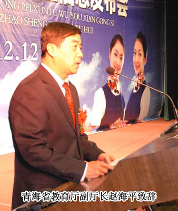 焦殿成董事長在致辭中提到:要培養(yǎng)出具有青藏高原文化背景、掌握藏漢英三語的特色空乘人才,將眾多的少數(shù)民族莘莘學(xué)子送上藍(lán)天,成為令人羨慕、陽光職業(yè)的民航乘務(wù)員、安全員,讓青藏高原勤勞善良人民的子孫后代走向國際、國內(nèi)高端服務(wù)和管理崗位,這是利于當(dāng)今、著眼未來、功在長遠(yuǎn)的千秋偉業(yè)。 趙海平副廳長代表青海省教育廳對雙方合作開辦空乘專業(yè)成功簽約表示了熱烈祝賀。并指出由青海師范大學(xué)與金通航空培訓(xùn)服務(wù)有限公司合作開辦的空乘專業(yè)正式簽約,落戶師大,落戶青海,這是在全國民航業(yè)改革開放、科學(xué)發(fā)展、快速繁榮,青海省深入貫徹落實(shí)教育規(guī)劃綱要,推動高等教育事業(yè)科學(xué)發(fā)展的大背景下,校企雙方審時度勢、開拓創(chuàng)新、與時俱進(jìn)的重大舉措,是推動青海省教育事業(yè)改革和發(fā)展的創(chuàng)新之路、希望之路。