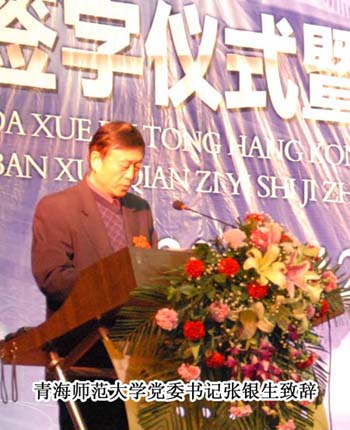 會議在順暢和諧的氣氛中舉行。首先,青海師范大學(xué)黨委書記張銀生先生和北京廣慧金通教育科技有限公司董事長兼總經(jīng)理焦殿成先生在《合作辦學(xué)協(xié)議》上莊重地簽字。