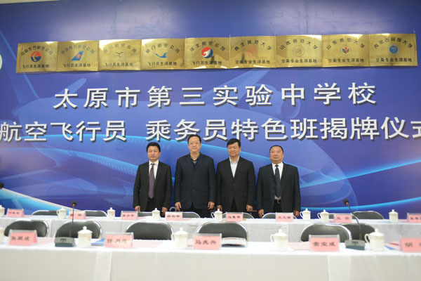 北京廣慧金通教育科技有限公司董事長兼總經(jīng)理焦殿成先生和太原市教育局黨委書記、局長馬兆興先生為太原市第三實(shí)驗(yàn)中學(xué)校成為航空飛行員空中乘務(wù)員生源基地校揭牌。目前為該校掛牌為基地校的航空企業(yè)及高校包括:中國南方航空公司、中國東方航空公司、四川航空公司、廈門航空公司、河北航空公司和山西師范大學(xué)等高等院校。