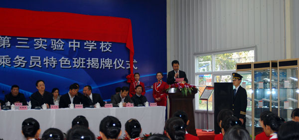 至此,2013年太原市第三實(shí)驗(yàn)中學(xué)校“校企合作(高中起點(diǎn))飛行員、空中乘務(wù)員定向班”開學(xué)典禮暨揭牌儀式圓滿地落下了帷幕,標(biāo)志著校企合作迎來的新起點(diǎn),開啟了新的篇章。今天的儀式既是一次揭牌儀式,也是嘗試探索新的辦學(xué)模式的良好開端,感謝上級(jí)領(lǐng)導(dǎo)的參與和幫助,太原市第三實(shí)驗(yàn)中學(xué)校航空飛行員空中乘務(wù)員班才能更加健全和規(guī)范,才會(huì)有更廣闊的前景,讓學(xué)子們圓夢吧!