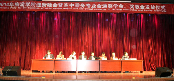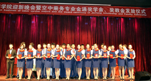 為進(jìn)一步加強(qiáng)內(nèi)蒙古師范大學(xué)旅游學(xué)院空乘專業(yè)的學(xué)風(fēng)建設(shè),鼓勵全院師生創(chuàng)先爭優(yōu),2014年10月23日晚,內(nèi)蒙古師范大學(xué)旅游學(xué)院迎新晚會暨空中乘務(wù)專業(yè)金通獎學(xué)金、獎教金頒發(fā)儀式在內(nèi)蒙古師范大學(xué)學(xué)院樓報(bào)告廳隆重舉行。