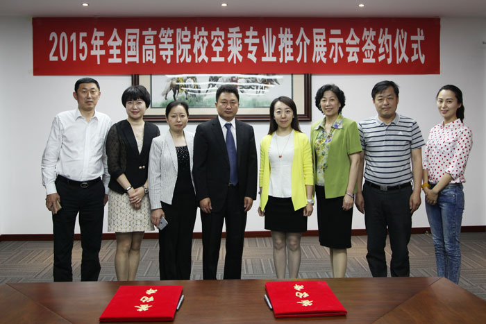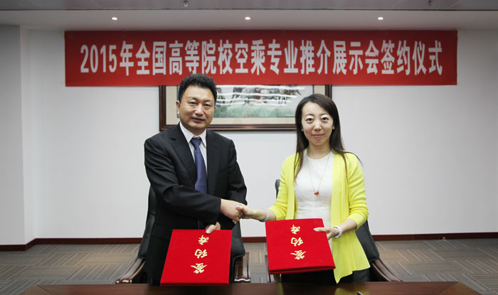 2015年5月21日在北京廣慧金通教育科技有限公司總部,中國民航人力資源開發(fā)中心與北京廣慧金通教育科技有限公司舉辦了“2015全國高等院?粘藢I(yè)推介展示會(huì)”合作簽字儀式。