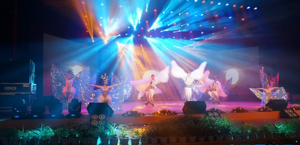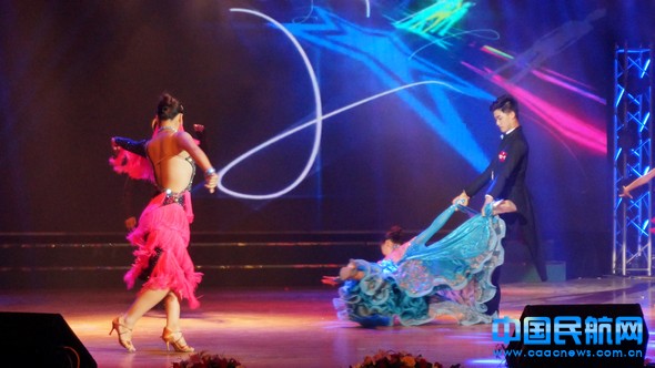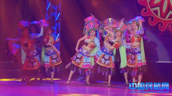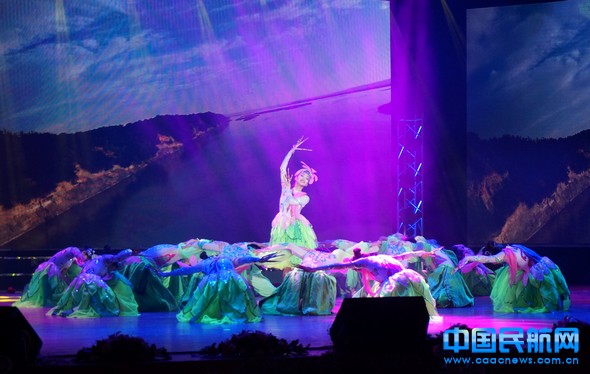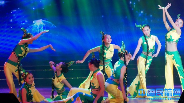盈盈一池蓮,恬淡出高潔;風(fēng)雨從容逸,仙姿映藍(lán)天。蓮花因其獨(dú)具的生長(zhǎng)環(huán)境,躍于萬花之上,成為一種逸群出塵的崇高生命感悟!蓮花潔身自處,正如空乘學(xué)子孜孜求學(xué),努力完成自身的成長(zhǎng),未來終將綻放“火焰化紅蓮”的勝景!內(nèi)蒙古師范大學(xué)的《碧水青蓮·悅動(dòng)藍(lán)天》呈現(xiàn)“芙蓉爭(zhēng)嬌出碧水,仙姿悅動(dòng)映藍(lán)天”的視聽盛宴,將整場(chǎng)晚會(huì)推向高潮。她們曼妙的舞姿,優(yōu)雅的舞步帶動(dòng)了全場(chǎng)的氣氛,也給在座的各位嘉賓、評(píng)委留下了深刻印象。