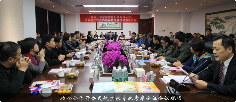 2015年11月19日,在北京廣慧金通教育科技有限公司總部,來自江西師范大學(xué)、貴州師范大學(xué)、海南師范大學(xué)、江西科技師范大學(xué)、大連交通大學(xué)、黑河學(xué)院、遼寧警察學(xué)院、遼東學(xué)院、河北民族師范學(xué)院、貴州大學(xué)科技學(xué)院、武漢工商學(xué)院、沈陽城市學(xué)院、蘭州工業(yè)學(xué)院、蕪湖職業(yè)技術(shù)學(xué)院、廣東科學(xué)技術(shù)職業(yè)學(xué)院、西安航空職業(yè)技術(shù)學(xué)院、山東濱州學(xué)院、新疆農(nóng)業(yè)大學(xué)科技學(xué)院、江蘇廣播電視大學(xué)海安學(xué)院、秦皇島職業(yè)技術(shù)學(xué)院等全國各省市的22所高等院校相關(guān)領(lǐng)導(dǎo),共同參加由北京廣慧金通教育科技有限公司組織召開的“校企合作開辦民航空中乘務(wù)專業(yè)考察論證會(huì)議”。北京廣慧金通教育科技有限公司董事長焦殿成、教育部高校畢業(yè)生就業(yè)協(xié)會(huì)空乘分會(huì)會(huì)長王小娟、江西師范大學(xué)副校長趙明、貴州師范大學(xué)副校長劉肇軍、江西科技師范大學(xué)副校長胡業(yè)華、遼寧警察學(xué)院副校長米佳、武漢工商學(xué)院副校長夏再興、沈陽城市學(xué)院黨委書記孫永新、海南師范大學(xué)教務(wù)處處長梁廣、黑河學(xué)院教務(wù)處處長許海深、貴州大學(xué)科技學(xué)院教務(wù)處處長趙鵬、河北民族師范學(xué)院教務(wù)處處長王偉、江蘇廣播電視大學(xué)海安學(xué)院副院長唐素云、遼東學(xué)院外國語學(xué)院黨總支書記姜長丹、山東濱州學(xué)院乘務(wù)學(xué)院院長宮新軍、蘭州工業(yè)學(xué)院人文社會(huì)科學(xué)學(xué)院院長張小華、大連交通大學(xué)經(jīng)濟(jì)管理學(xué)院黨總支書記關(guān)英、新疆農(nóng)業(yè)大學(xué)科技學(xué)院教務(wù)處處長霍世剛、蕪湖職業(yè)技術(shù)學(xué)院合作辦主任王世友、蕪湖職業(yè)技術(shù)學(xué)院附屬中專學(xué)校書記兼校長鄔余俊、秦皇島職業(yè)技術(shù)學(xué)院教研室主任楊振秋、西安航空職業(yè)技術(shù)學(xué)院航空管理學(xué)院院長韓春梅和來自22所高校的46名領(lǐng)導(dǎo)和嘉賓,以及北京廣慧金通教育科技有限公司的各級領(lǐng)導(dǎo)和員工,計(jì)百余名人員參加了此次考察論證會(huì)議,會(huì)議由公司董事長助理兼校企合作部總經(jīng)理付曉軍主持。