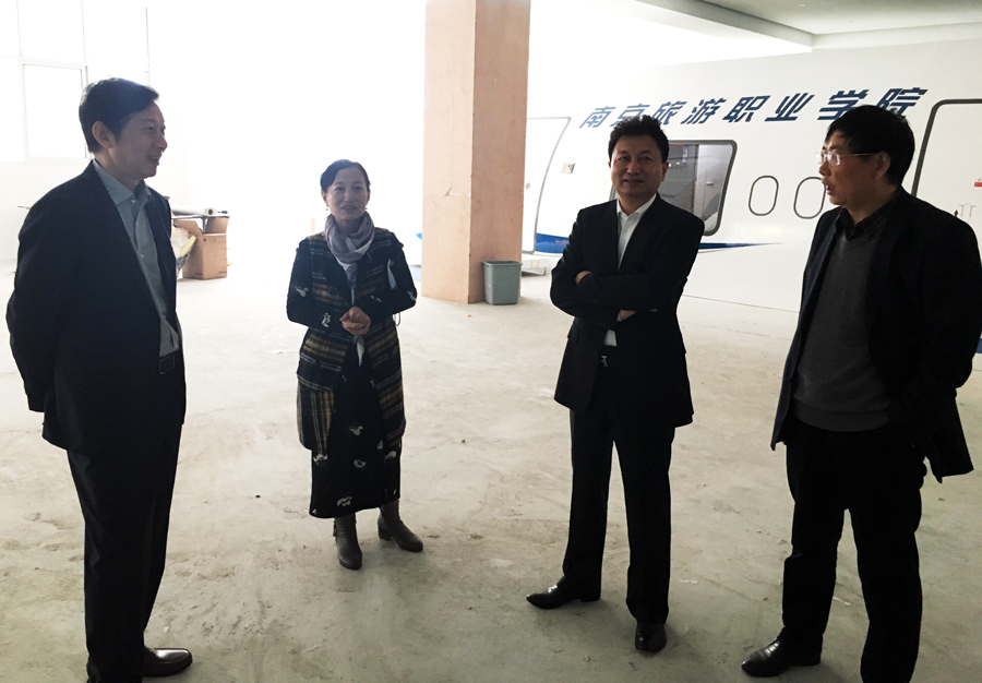 會后,與會人員一起前往南京旅游職業(yè)學院乘務學院實訓基地參觀了新的模擬機艙。