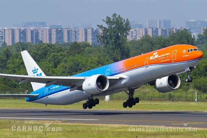 荷蘭皇家航空今年推出了其獨(dú)一無二的橙色涂裝波音777-300飛機(jī)。