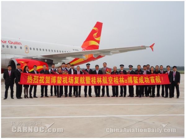 12月29日9:30,桂林航空GT1088航班從桂林兩江機(jī)場飛抵瓊海博鰲機(jī)場,成為博鰲機(jī)場復(fù)航后迎來的首個(gè)航班,標(biāo)志著該機(jī)場在二期擴(kuò)建后重新投入運(yùn)行。從2017年1月起,博鰲機(jī)場將陸續(xù)開通博鰲至湛江、珠海、揭陽、昆明、貴陽、西昌、長沙、南昌、寧波、杭州、成都、合肥、鄭州、徐州、揚(yáng)州、太原、蘭州、石家莊、濟(jì)南、青島、北京南苑、哈爾濱等20余條國內(nèi)主要城市航班,致力服務(wù)于海南航空市場。