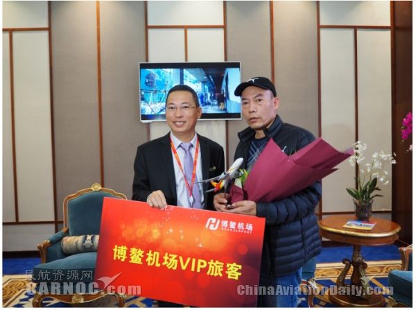 當(dāng)?shù)谝晃宦每土蜗壬聶C(jī)時(shí),博鰲機(jī)場工作人員為他獻(xiàn)上鮮花及飛機(jī)模型等精美紀(jì)念品,同時(shí)告訴廖先生作為復(fù)航的第一位旅客,將享受博鰲機(jī)場終身免費(fèi)貴賓室使用權(quán)。在接受采訪過程中,廖先生說:“非常幸運(yùn)能夠成為博鰲機(jī)場復(fù)航后首位旅客,剛下飛機(jī)就受到服務(wù)人員的熱情接待,感受到海南特有的海島風(fēng)情及溫暖怡人的氣候,感謝博鰲機(jī)場給我的驚喜,以往的海南之行都是降落在海口或三亞,如今多了一個(gè)新選擇。作為新建機(jī)場,博鰲機(jī)場優(yōu)美獨(dú)特的建筑風(fēng)格和干凈整潔的樓內(nèi)設(shè)施都給我留下很深的印象。相信博鰲機(jī)場必將成為眾多出差、旅行人士的新航站,希望博鰲機(jī)場今后能開通更多的航線,讓更多的旅客感受博鰲機(jī)場的熱情及貼心服務(wù)”。