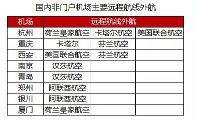 對于中國其他非門戶機(jī)場而言,主基地航司業(yè)務(wù)量占比和機(jī)場絕對吞吐量規(guī)模較難同時(shí)達(dá)到一定的規(guī)模,所以利用國外航司來構(gòu)建遠(yuǎn)程航線網(wǎng)絡(luò)才是最優(yōu)的選擇。