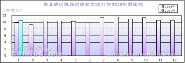 圖:2017年1月華北各地區(qū)機(jī)場飛機(jī)起降架次
