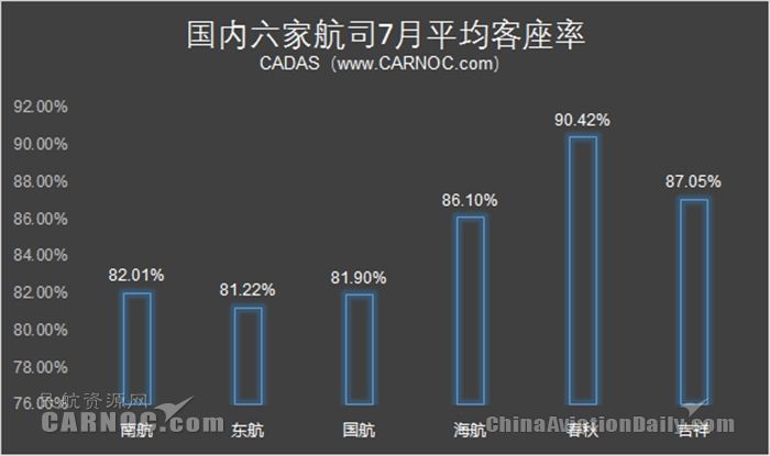 近日國(guó)內(nèi)幾家上市航空公司公布了7月份的生產(chǎn)運(yùn)營(yíng)數(shù)據(jù),海航繼續(xù)保持高速增長(zhǎng)的態(tài)勢(shì),春秋航空平均客座率略有回落,但仍然是最高的。