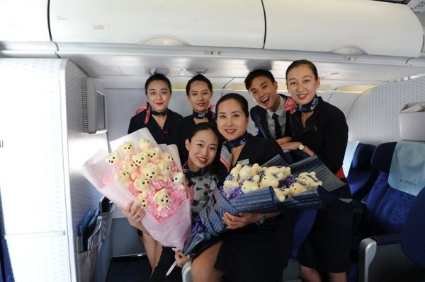 當(dāng)乘務(wù)長(zhǎng)薛芳打開機(jī)艙門送走所有旅客時(shí),眼前突然一亮:今天凌晨1:30才飛回來的佟霄手捧花束,站在她的面前。佟霄走上前緊緊抱住了愣在那里的薛芳,在耳邊呢喃:“師父,您辛苦了!我來接您。”頓時(shí),薛芳眼里噙著淚花,客艙里響起了陣陣喝彩,大家紛紛湊過來合影拍照,略顯疲憊的薛芳臉上露出欣慰的笑容,高興地與徒兒們一起擺出各種姿勢(shì)合影留念。